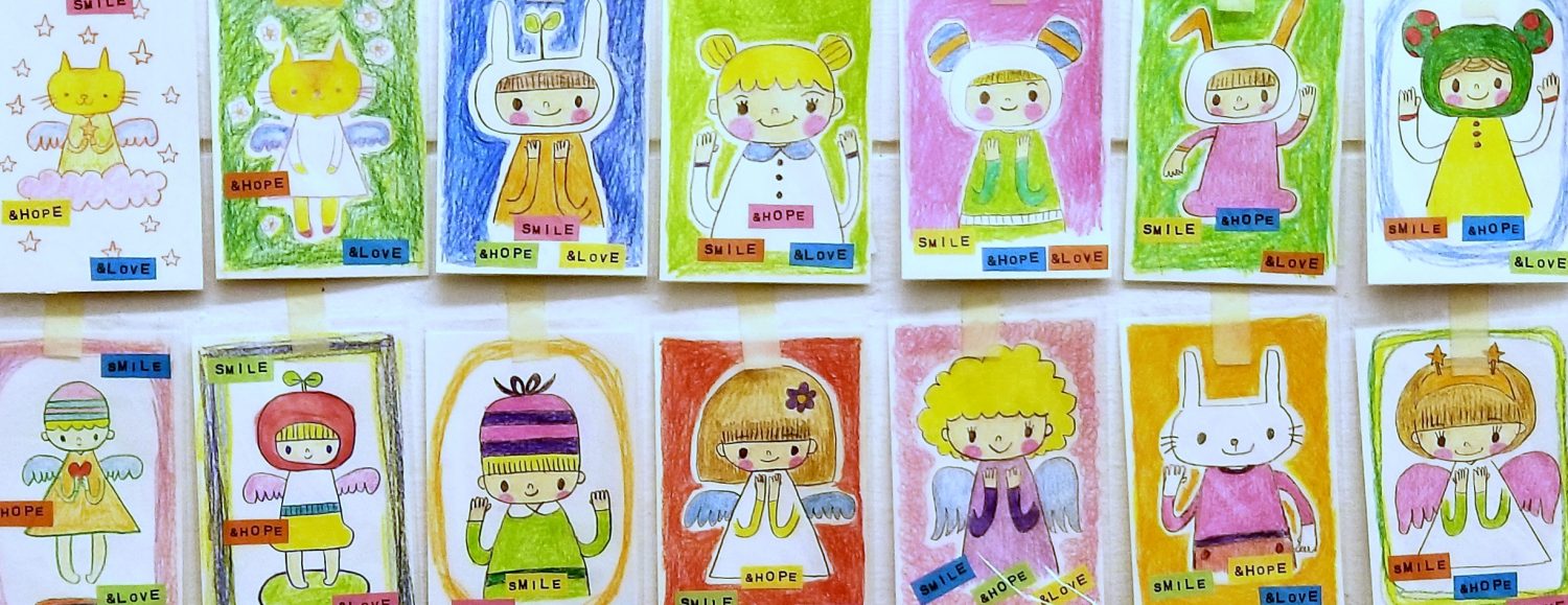 シンプル&カラフル&スマイルをモットーに、小さいお子さんから年配の方まで親しめる作品を制作。猫やうさぎ、天使をモチーフとしたキャンバス・アクリル画を中心に、手工芸作品なども手掛ける。
